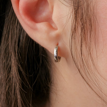 This Huggie Hoop is crafted from tubing, making it lightweight and comfortable for all-day wear. The hoop has an easy to use hinged design; the back of the hoop snaps closed over the post to secure the earring.