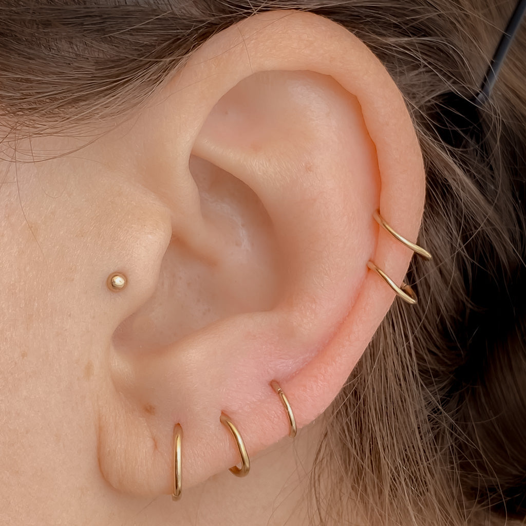 Multi Hoops are clasp-less and designed to be worn for long periods of time. We do not recommend removing the Multi Hoop frequently. Please allow up to a .5mm difference in diameter sizes for each handcrafted hoop.