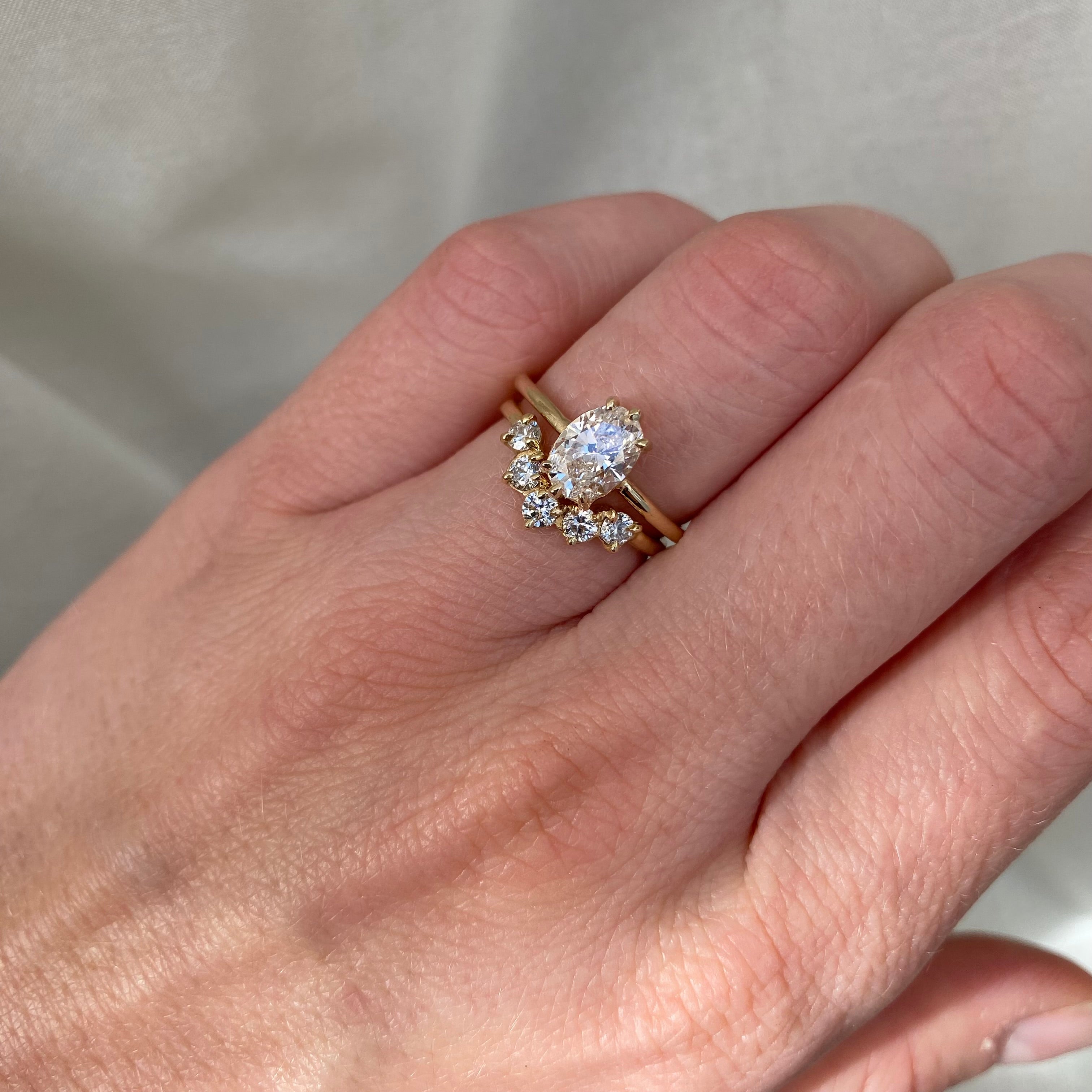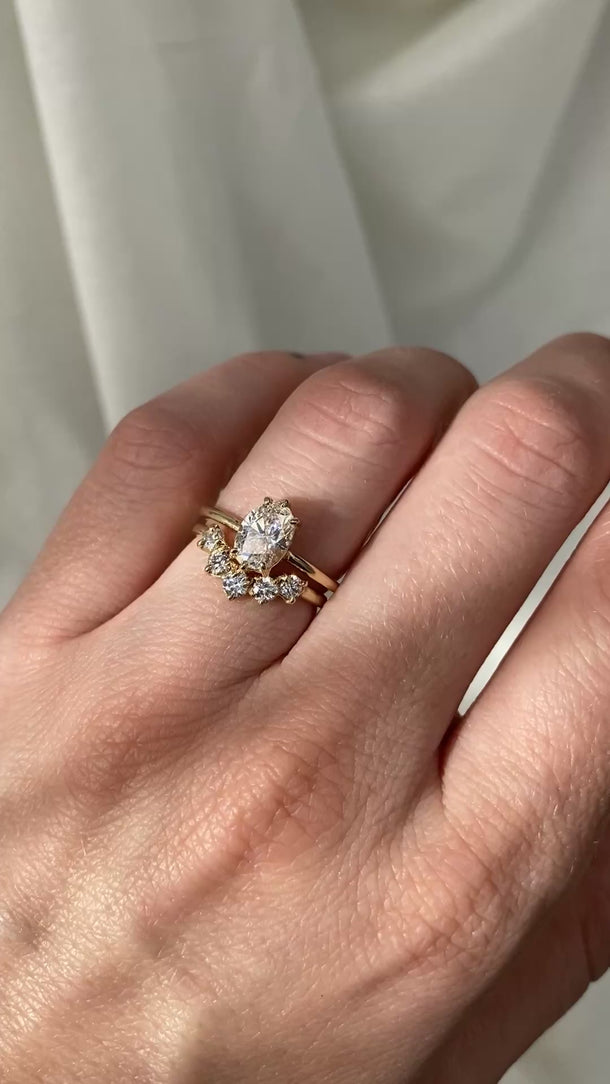 American sourced, recycled 14k yellow gold. Nickel-free. As this ring is made to order, each diamond will vary slightly in carat, color grading and clarity.