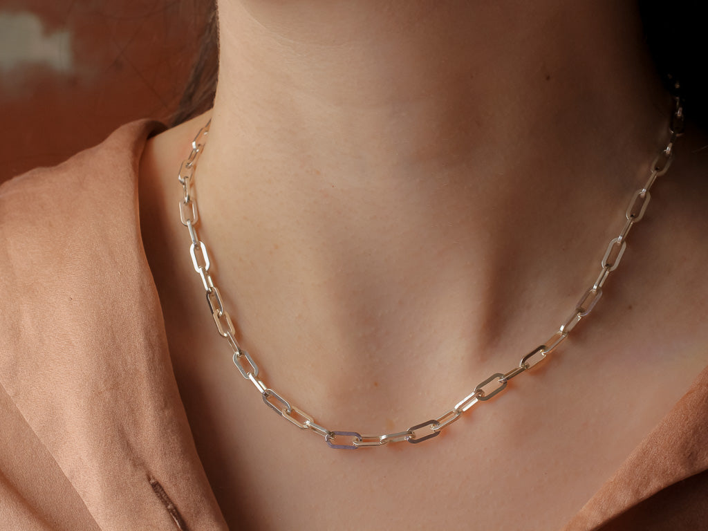 Flat Paperclip Necklace | Recycled Sterling Silver