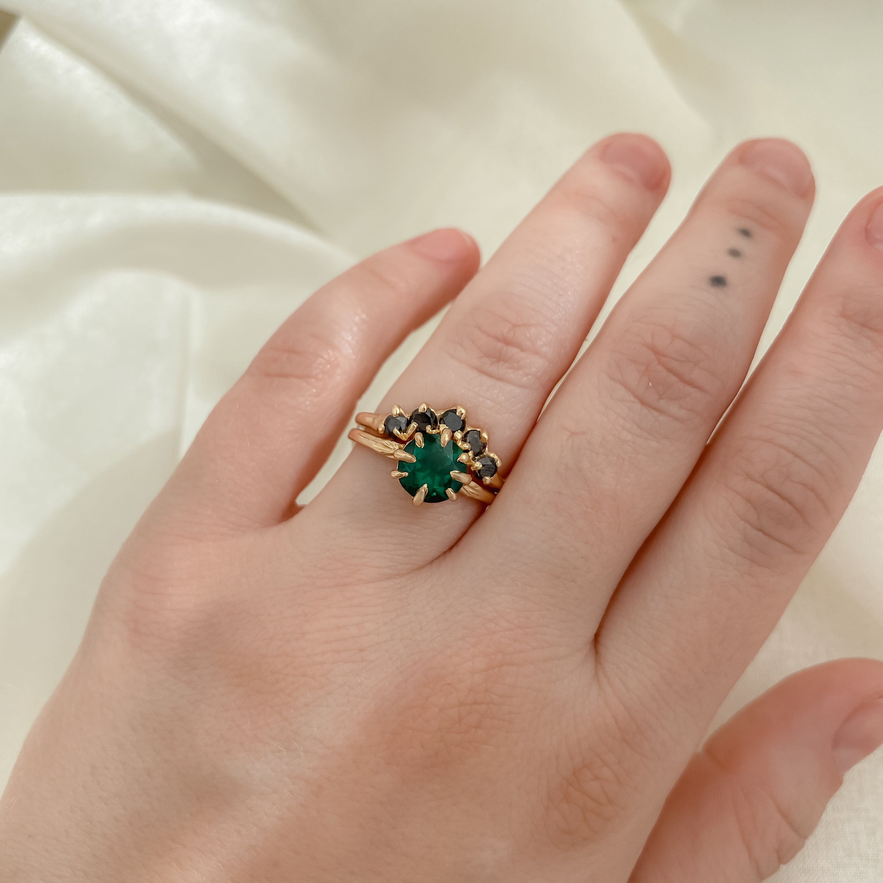 Defy gravity with this show stopping emerald solitaire. The Something Wicked Ring features a 1.2 carat emerald in a handcrafted band of recycled 14k gold. Six prongs add style and functionality with a classic yet secure setting.