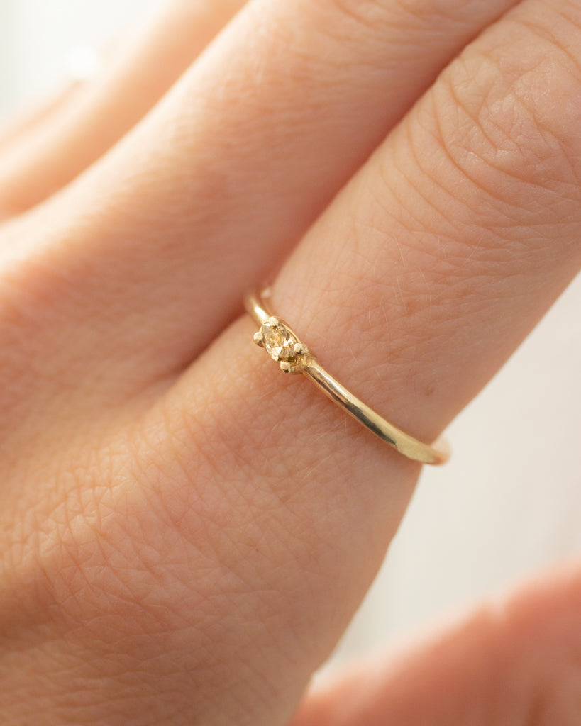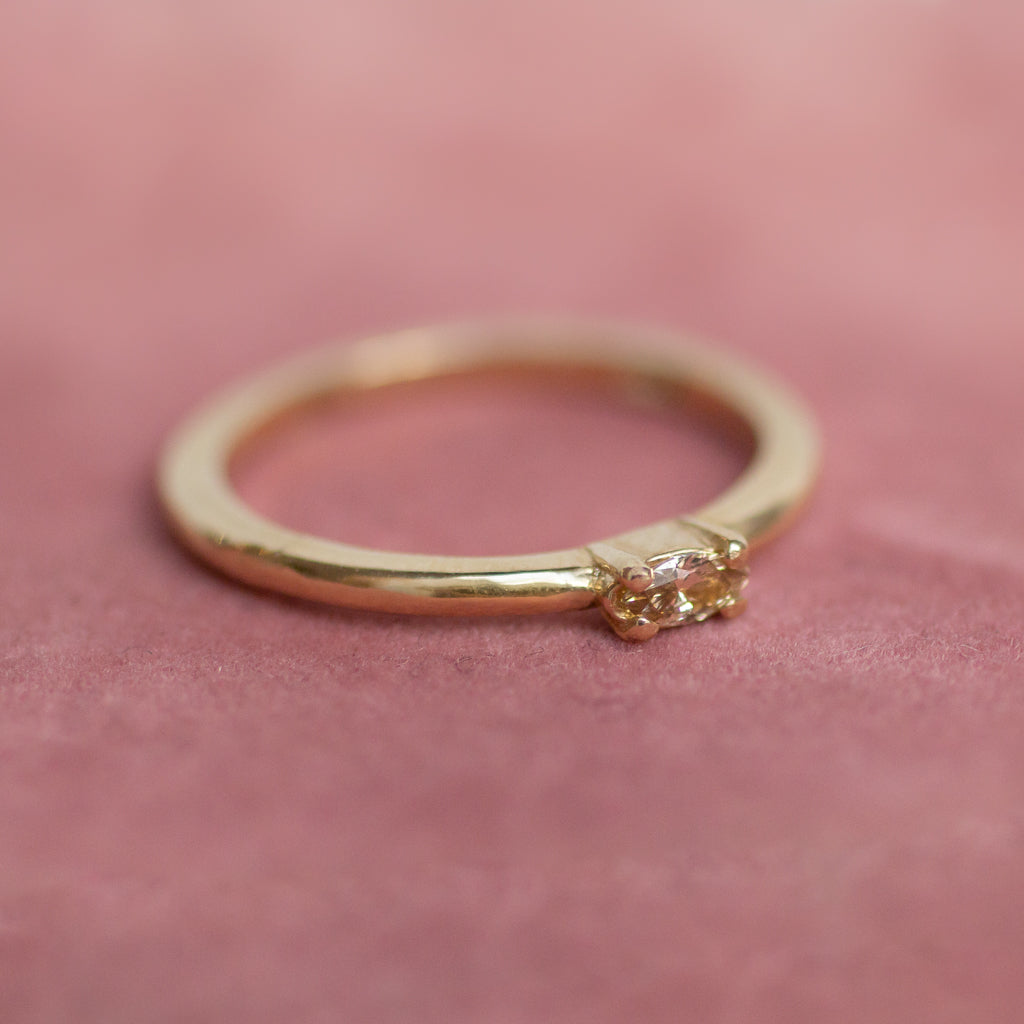 Vintage breathes new life with this one of a kind ring. A reclaimed, champagne marquise diamond lies in a modern, simplistic band of 14k gold. Handcrafted at Lackadazee's studio using 100% consciously sourced materials.