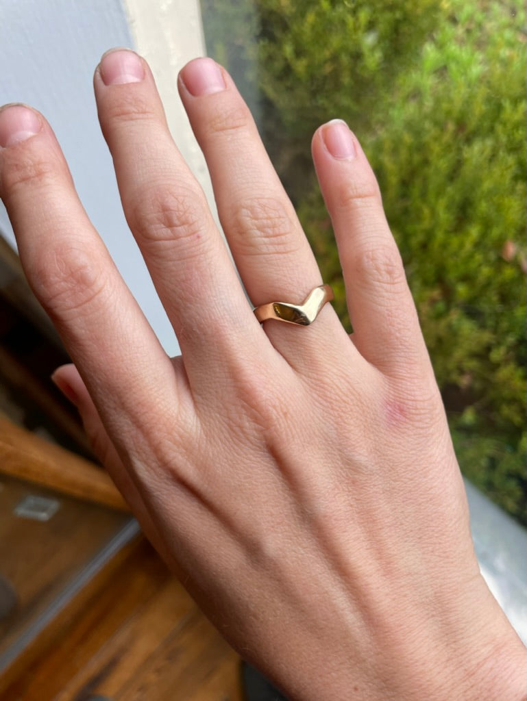The Khalil Band is made to order from reclaimed 14k gold. A v-shaped, 3mm* band with your choice of finish (Matte or Polished).