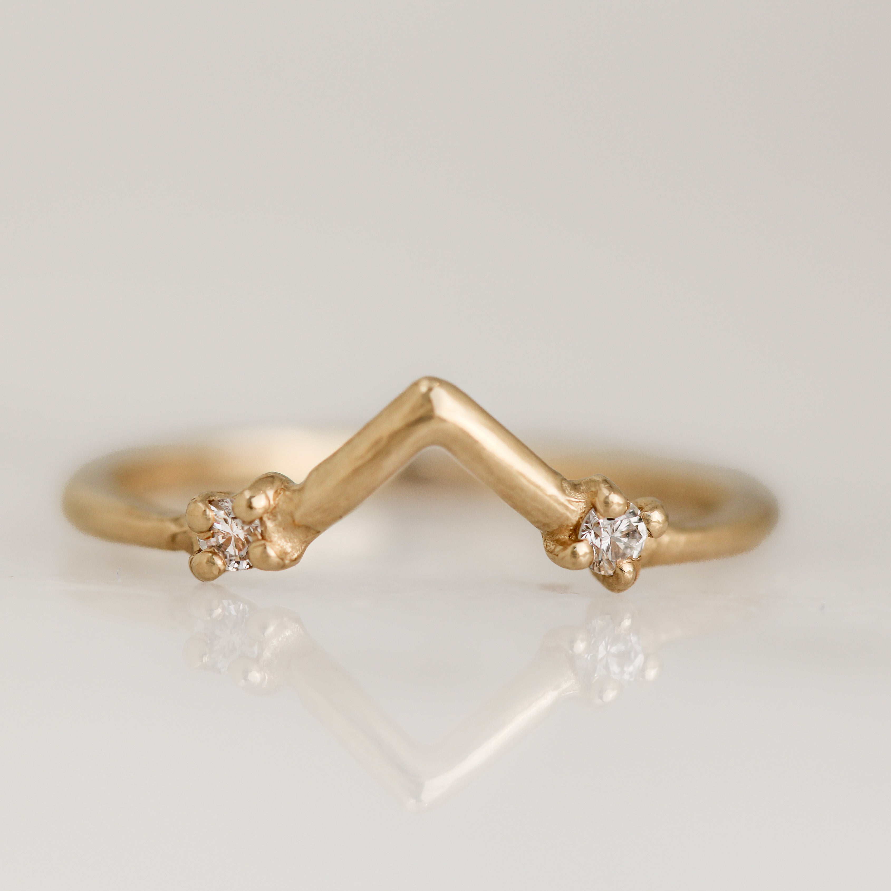 A stackable band, crafted from reclaimed 14k gold and set with ethically sourced diamonds. Made to order in any size.