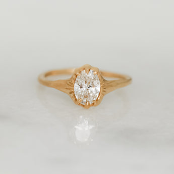 The Hidden Gem 2.0 is an oval solitaire with a secret! Concealed underneath the main, lab-create diamond rests a hidden, ethically sourced diamond. This consciously crafted ring is made to order from nickel-free, post-consumer recycled 14k gold.
