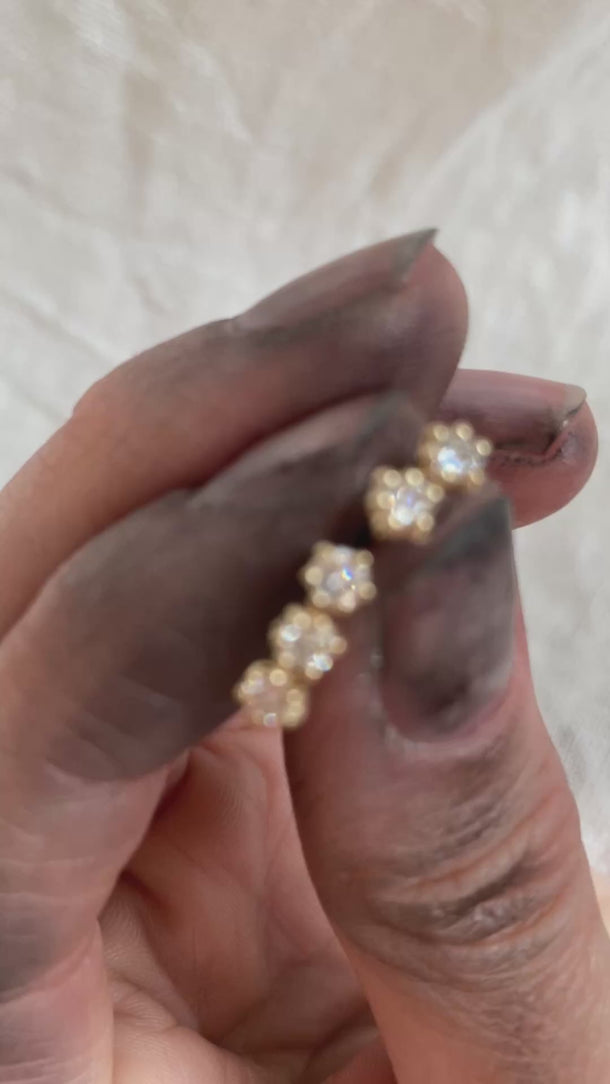 Step into the Miniverse where everything is tiny and covered in diamonds. This collection puts a twist on the classic diamond stud, featuring four different styles to mix and match. Crafted from reclaimed 14k gold and lab created diamonds.
